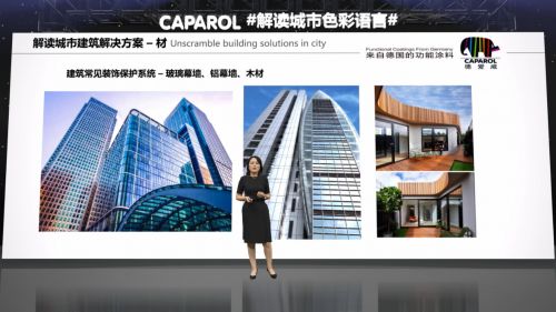 德爱威产品推广专家柳桂玲女士从城市建筑类型和城市建筑材料解决方案两个方面,详细介绍了当今城市主要建筑类型、建筑常见装饰保护系统,分享了德爱威专业建筑材料解决方案和案例,让大家看到了德爱威在城市建筑材料解决方案专业实力。