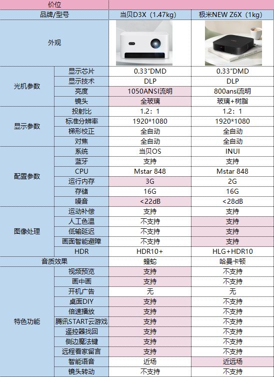 2021双十一投影仪干货:极米NEW Z6X和当贝D3X哪个性价比高?