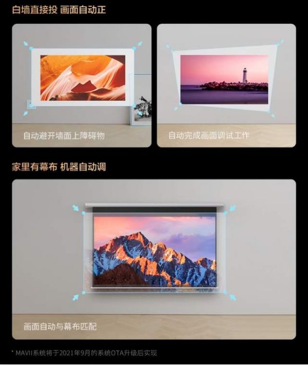 1.画面调节快。自动对焦和梯形校正速度较快,还有画面避障功能,投射很方便。