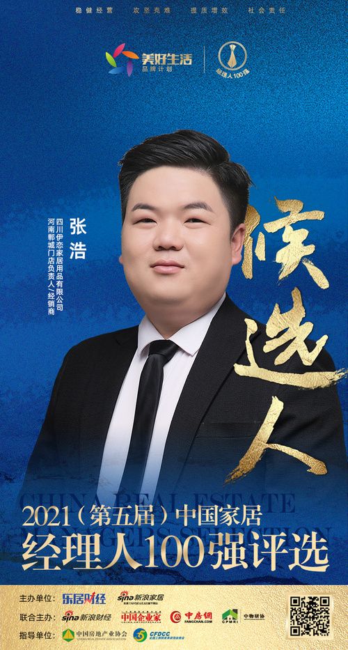 新浪家居讯 2021年10月11日,由新浪家居、乐居财经主办,新浪财经、中国企业家、中房网、中物研协联合主办的“韧性——2021(第五届)中国家居经理人评选”正式启动,网络报名同步开启。10月19日,四川伊恋家居用品有限公司河南郸城门店负责人/经销商张浩获提名,成为“2021中国家居经理人100强”候选人。