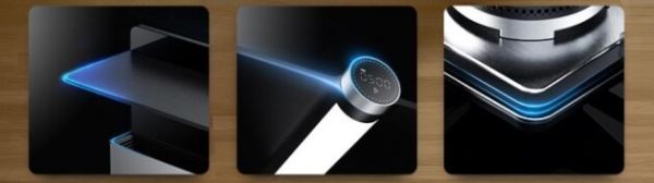 此外,创新的柱面LED灯元素,可以在烹饪中可以洒出高亮的扇形光,也是一种动静相宜的科技韵味,完美融入美好的厨房及烹饪生活。