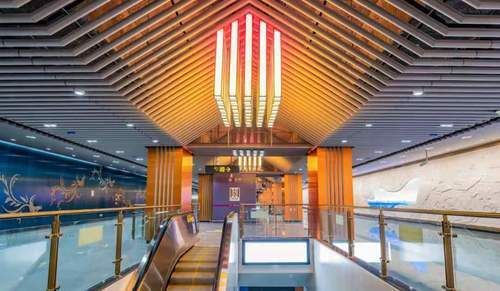 在室内设计中,该线精心打造了五座公共艺术重点站,并在其中设置空间艺术品,由北至南分别为:皇花园站《花重锦官城》、抚琴站《凤求凰》、青羊宫站《道蕴蓉城》、锦城大道站《自然史诗》、二江寺站《链接》。