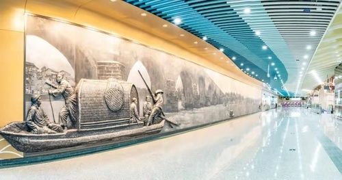 以二江寺古桥作为主体形象,运用独具特色的二维半艺术造型手法,突出“二江寺”这一站名所凸显的古今交集,再现了成都的古桥文化、商贾文化、码头文化、川西田园风光等。