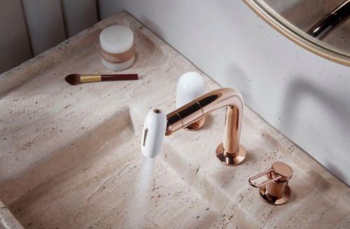 科勒希尔维美妍·梳洗龙头突破了传统龙头的单一模式出水局限性,配备 “多功能出水嘴”:“上出水”为轻柔水柱,可直接对嘴漱口,省去漱口杯;下出水为“云雾水”,绵密细腻更适用于日常洗手洁肤。两种出水模式一键轻松切换,并搭载三款选装龙头配件:洁面仪、维C净化器和冲牙器,将日常梳洗所需一站式整合,点滴细节之处尽显人性化关怀,轻松获得精致优雅生活体验。