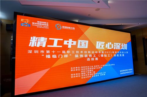家装协会、福临门世家、卓邦建材携手喊话行业工匠:“谁最能装”。10月17日, 深圳市第十一届职工技术创新运动会暨2021年深圳市技能大赛——“福临门杯”装饰装修工(镶贴工)技能竞赛选拔赛在宝能党群服务中心正式开赛。56名胜出的家装师傅将在决赛比拼中竞争8名“深圳工匠”的职业荣誉。