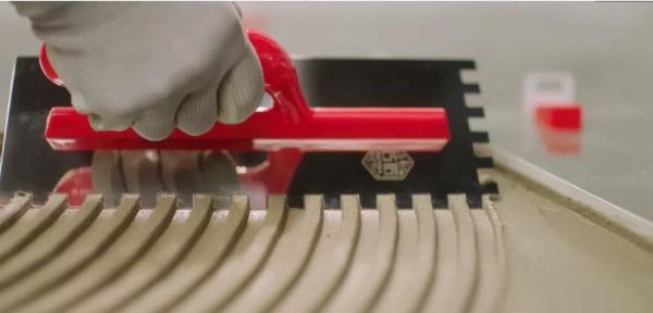 在瓷砖胶搅拌过程中难免混入空气,用巧匠齿形刮板梳理齿型,可以帮助排除瓷砖胶中的空气,让瓷砖胶充分填满基面孔隙和砖背凹槽,有效提高瓷砖胶和粘接面的接触。