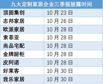 新浪定制频道讯 近日,九大定制家居企业2021年第三季度报告披露时间陆续公布,将集中在十月下旬。