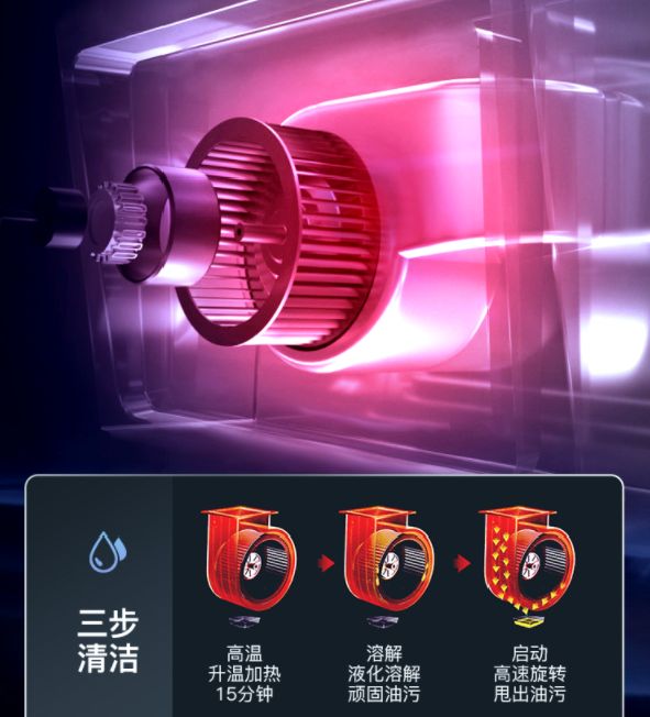 集成灶内置一键热除油功能,免拆机,一键清洁内部油烟,大大减轻了清洗问题,与油腻厨房彻底说再见。
