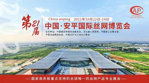 中国安平国际丝网博览会是经党中央、国务院审批保留的河北省境内7个省部级展会之一,是全球丝网专业展会,以其弘扬丝网产业文化、展示尖端产品技术、拓展合作交流领域等特点,被丝网界视为全球最重要的丝网及相关产品交易平台。自2001年开始,已连续举办20届,第21届中国?安平国际丝网博览会,于2021年10月22-24日在河北安平国际会展中心举办;本届展会将是进一步打造集产业转型、成果展示、贸易洽谈、科技创新、高峰论坛以及深化供给侧结构性改革于一体的国际盛会。