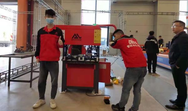 明州机械本次出展的冲孔机产品是这款2016年设计的新型冲孔切割一体机,这款机械在研发的同年在广州琶洲门窗展会上得到众多新老客户的支持和抢购。当届展会布展完成销售了12台这款新型锌钢护栏冲孔切割一体机。今年2021年10月19号带去安平丝网会展的是升级版的,锌钢护栏冲孔切割一体机。主要是升级了那些项目,让我们先看会展布展情况一睹为快。
