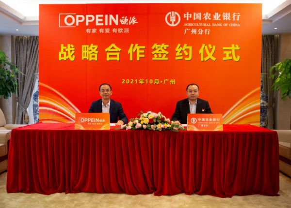 新浪定制频道讯 2021年10月21日,欧派家居集团股份有限公司与中国农业银行股份有限公司广州分行在广州欧派集团总部签署战略合作协议,欧派集团获得农行广州分行100亿元综合授信额度。双方将在相关金融领域开展合作,这也是欧派首次获得银行业百亿级授信。