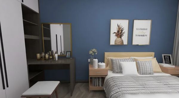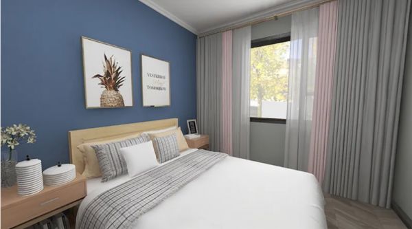 卧室有着自然和谐的气息,又有着“小清新”质感。包容性极强的整体衣柜延伸出别致梳妆台,美学设计与功能性、便利性兼顾。原木色的大床,搭配有小型书架功能的床头柜,提升了空间的文艺感。窗帘的选择可谓点题之笔,浅粉+浅灰,满满的温馨与幸福。