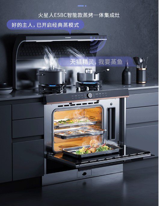 外观上,E5BC蒸烤一体集成灶以精工设计引领高端品质感,全新升级的外观搭配简约流畅的线条,更显不凡格调;在蒸烤功能上,延续了火星人“快蒸嫩烤”的烹饪优势,以120℃高温使水迅速转化为水蒸气,快速蒸透食物,烤则是通过底部蒸汽发生器释放少量水蒸气,用以补给食材流逝的水分,杜绝了食物表皮焦糊的现象,优化烹饪体验;此外,E5BC蒸烤一体集成灶在智能方面进一步升级,增加了语音控制、语音播报提醒的功能。不但可以通过语音声控来设置菜品蒸烤模式,还能贴心提醒燃气泄漏、蒸箱干烧、电路异常等情况,为消费者带来烹饪多元、智能又安全的厨房体验。双十一在天猫火星人集成灶直播间,会有更优惠的折扣让利给消费者,想要入手的可以关注一下。