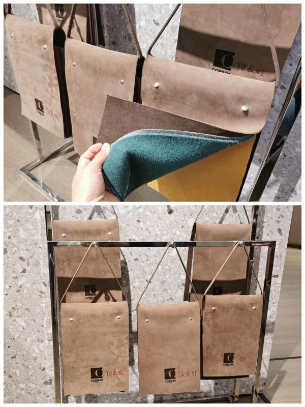 这家的全皮沙发,据介绍采用的是巴西进口的头层黄牛皮。每款沙发都申请了外观专利,沙发的色彩有100多种可以选配。进口家具均有报关单。