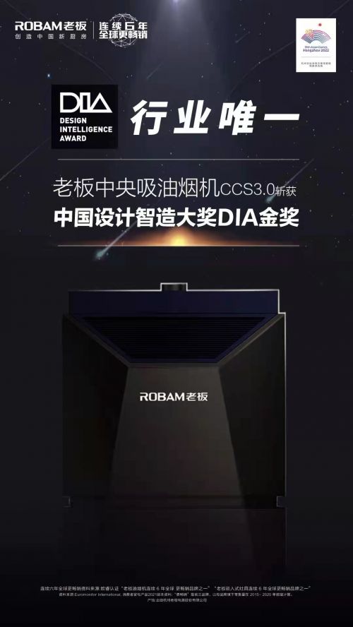 在技术研发领域,老板电器也从未止步,中央吸油烟机不断迭代升级。目前,颠覆性新品、行业首创发明的“集中式油烟排放系统--老板中央吸油烟机CCS3.0”,自发布以来就引起社会各界的不同凡响,更是在10月12日晚,由浙江省人民政府指导,中国美术学院、浙江省经济和信息化厅、绍兴市人民政府主办,中国工业设计协会和教育部高等学校工业设计专业教学指导分委员会协办的2021第六届中国设计智造大奖颁奖盛典上,斩获“2021年中国设计智造大奖DIA金奖”,这也是厨电行业唯一获奖的作品,现场浙江省人民政府副省长王文序出席颁奖盛典并为金奖获得者颁奖。