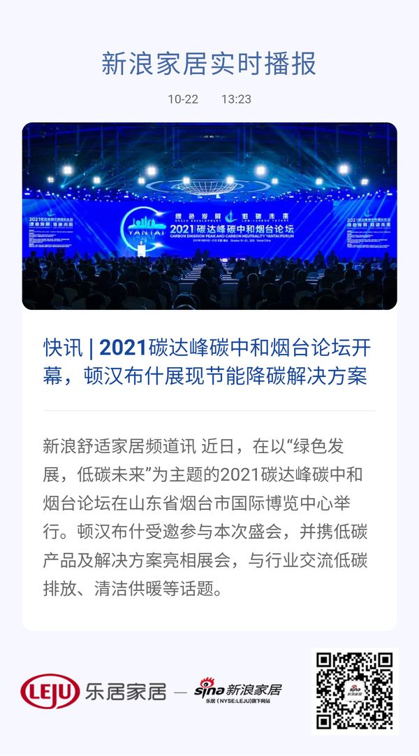 新浪舒适家居频道讯 近日,在以“绿色发展,低碳未来”为主题的“2021碳达峰碳中和烟台论坛”在山东省烟台市国际博览中心举行。顿汉布什受邀参与本次盛会,并携低碳产品及解决方案亮相展会,与行业交流低碳排放、清洁供暖等话题研讨。