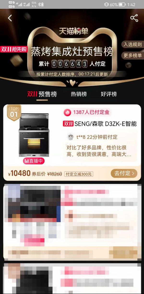 就在昨天,双十一预售火热开启,森歌产品再次先声夺人,D3ZK-E蒸烤集成灶天猫精灵款在天猫预售榜勇夺销量冠军,展现出用户对森歌产品的热切期待。同时,在今天的展会上,展出多款系列产品,吸引行业内外众人的驻足关注。无论线上,还是线下,森歌,都用品质和实力证明了自己的实力,占据了流量和焦点的中心位。