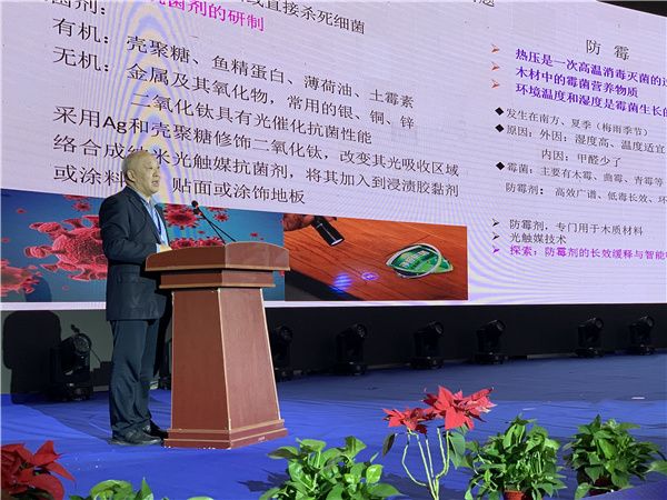 北京林业大学材料科学与技术学院院长于志明分享“门类市场需求与产业转型趋势”主题演讲