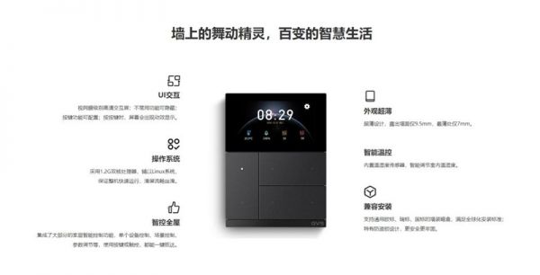 而触摸屏在一部分如空调温度调整、灯光颜色调整等深交互上有先天优势。华尔兹将物理按键与触摸屏完美结合,全新打造墙面UI交互机制,能同时满足家居场景里面的快交互和复杂交互的需求。