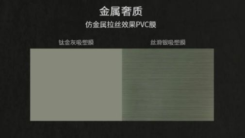 为营造浩瀚的宇宙星河效果,“星辰”系列采用了具有金属奢感的钛金灰吸塑膜和丝滑银吸塑膜,材料本身自带的强烈仿金属拉丝效果,在灯光之下闪烁出点点星光,置身其中仿佛畅游在神秘的星辰大海当中,带给人一种空旷舒适感的同时进一步拉伸了空间感受。
