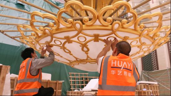 从家居照明灯具到大型灯光工程,说起这些年最大的感受,区经理认为“工匠精神”是华艺照明能不断拓展产业版图的法宝。以此次中央礼品文物中心的灯具为例,早在2019年华艺照明就组建起了13人的核心技术团队,配合场馆设计方进行灯具艺术设计、结构、工艺的商讨与打磨,在确认整体设计后,团队又在全国搜寻质量上乘的原材料,“仅吊灯装饰使用的云母石就花费了近2个月的时间去寻找,确保最终完美呈现效果。”