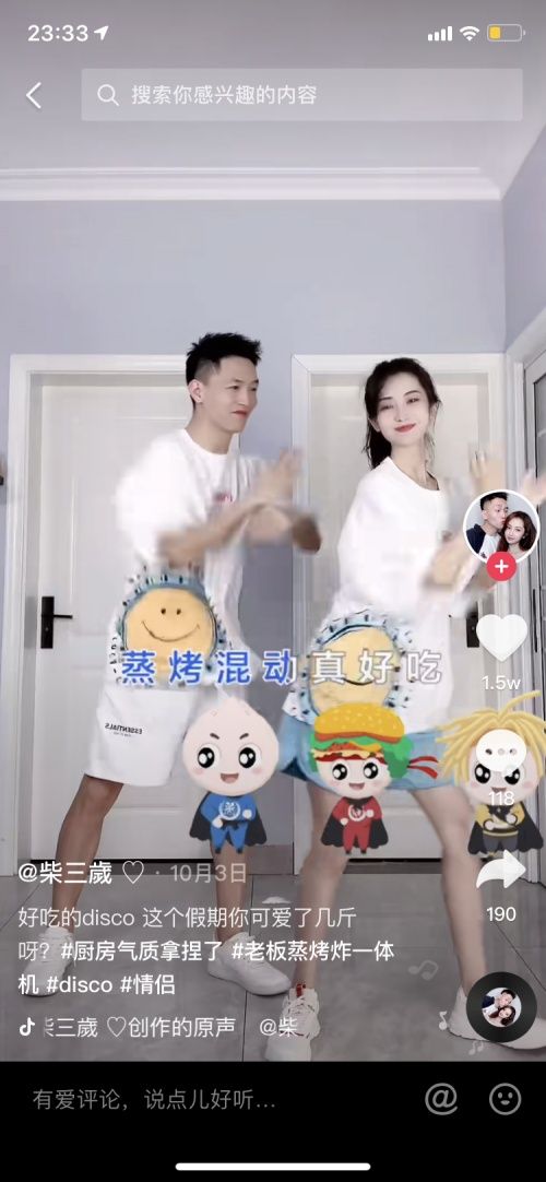 此外,在主流短视频社交平台抖音上,老板电器同步发起了了#厨房气质拿捏了#话题任务挑战赛,该话题一经上线,其《蒸烤舞》中“蒸好吃、烤好吃,蒸烤混动真好吃,只要家有老板蒸烤一体机,蒸蒸烤烤都好吃!”的洗脑曲调与歌词及魔性舞蹈均深受网友们的喜爱,甚至吸引到了许多来自不同领域的头部KOL及KOC参与打卡,如有百万粉丝的舞蹈红人“小豆苗儿”、情侣KOL柴三岁等等,结合自己的不同风格,花式演绎了这首洗脑神曲。