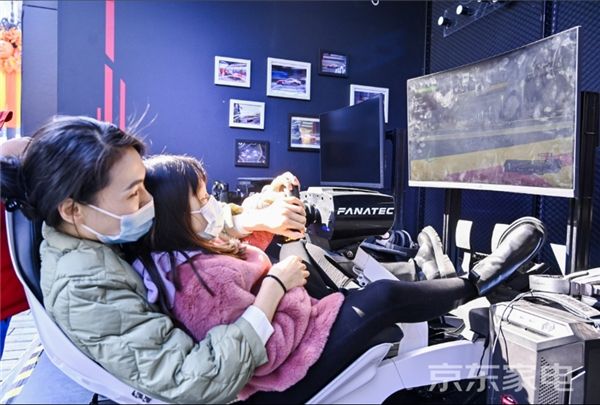 京东家电超级5焕新嘉年华现场,以阿斯顿·马丁Vantage为基础经过深度改装的超级跑车车身上涂装了京东家电“焕新你的生活”品牌主张,吸引了最多的人流。在跑车旁边是高度模拟赛车的阿斯顿·马丁圈速赛体验仓,体验者可以坐在狭窄的赛车座舱内像赛车手一样在跑道上驰骋。高难度的赛车模拟仓挑战吸引了更多体验者排队重复挑战。