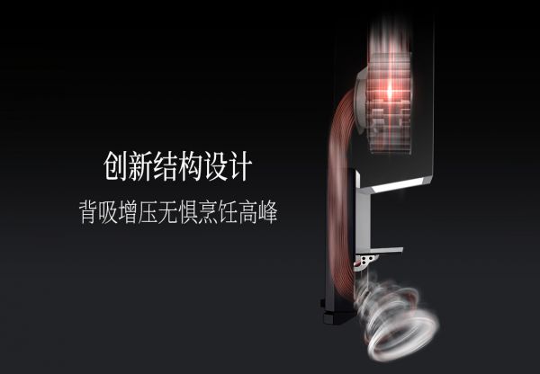 针对上述用户痛点,索奇厨电创新研发了背吸增压结构设计的优化方案,同时吸烟口距离烟源更近,低空劲吸更加贴近烟源,油烟止于源头;