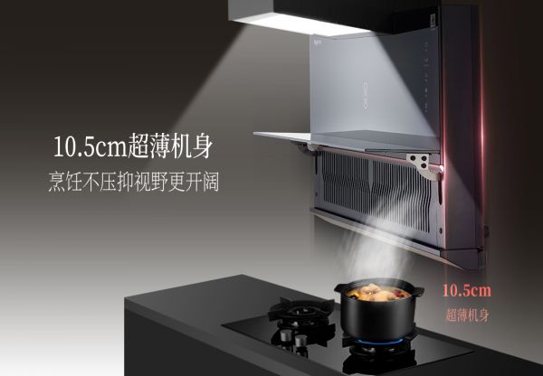 油烟机作为厨房的标配,年轻一代消费者不仅注重其实用性,更看重其高颜值。索奇K800油烟机采用超薄机身设计,机身厚度仅有10.5cm,极致纤薄释放更多厨房空间,烹饪视野更加开阔!