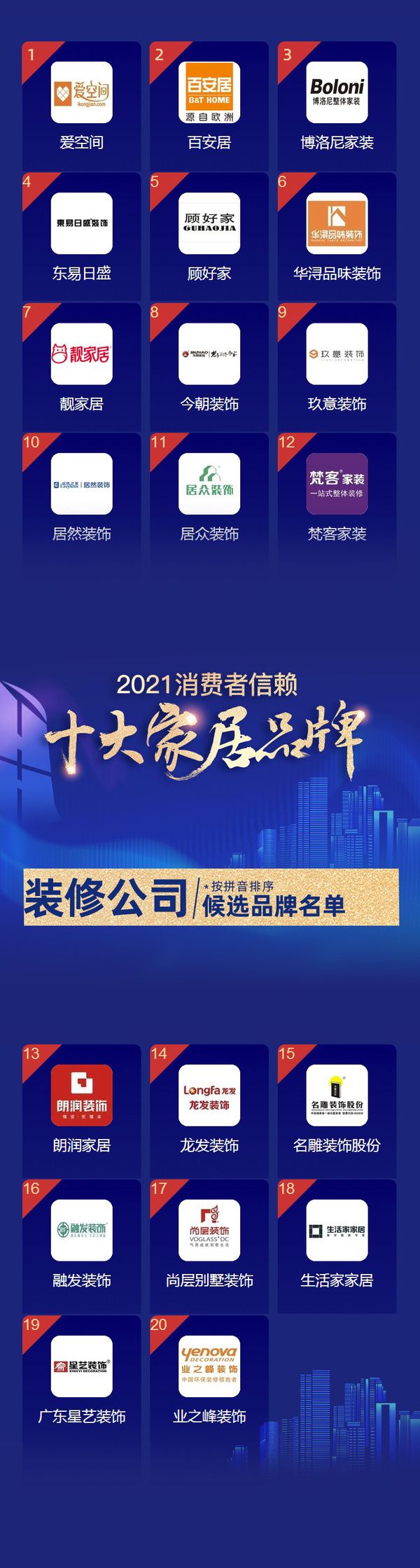 「2021消费者信赖十大家居品牌-装修公司类」候选名单揭晓!