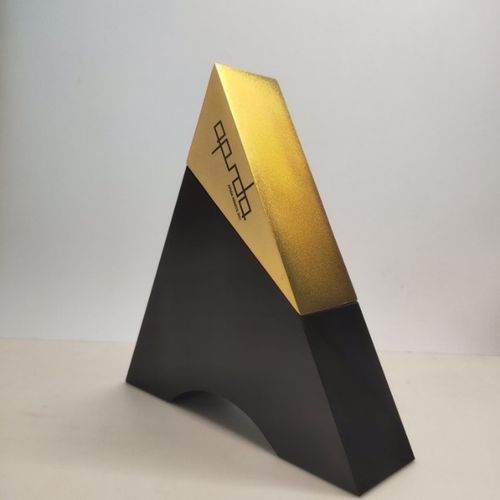 APSDA奖奖杯的形式是字母A和三角形的统一游戏,包含了力量、创造力、光照、提升和更高视角的象征意义。标志的倾斜位置赋予了现代感,突出了崇高的顶点,获奖者通过良好的设计为世界进步做出了贡献。