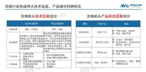 目前市面上的洗地机细分为两种,一类是以滴水为代表的水尘洗地机,一类是以添可和必胜为代表的气尘洗地机。两者的根本区别在于:气尘洗地机是在吸尘器的基础上进行改良,水尘洗地机则是彻底摒弃吸尘器的技术,使用创新的水循环技术达到清洁的目的。