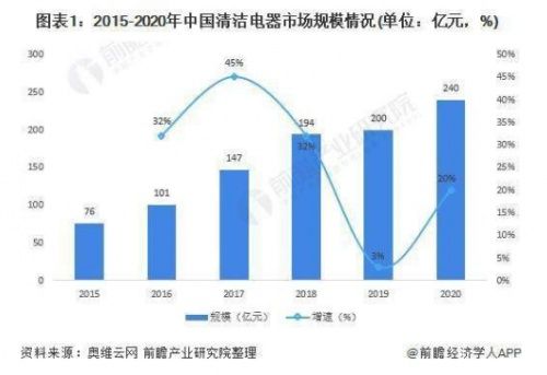 据相关数据报道,中国清洁电器行业市场规模从2015年的76亿元增长至2020年的240亿元,品牌数量从2019年的个位数到2020年的近百个,年复合增速高达26%。2020年初的新冠疫情更是加快了家用清洁电器的增长。