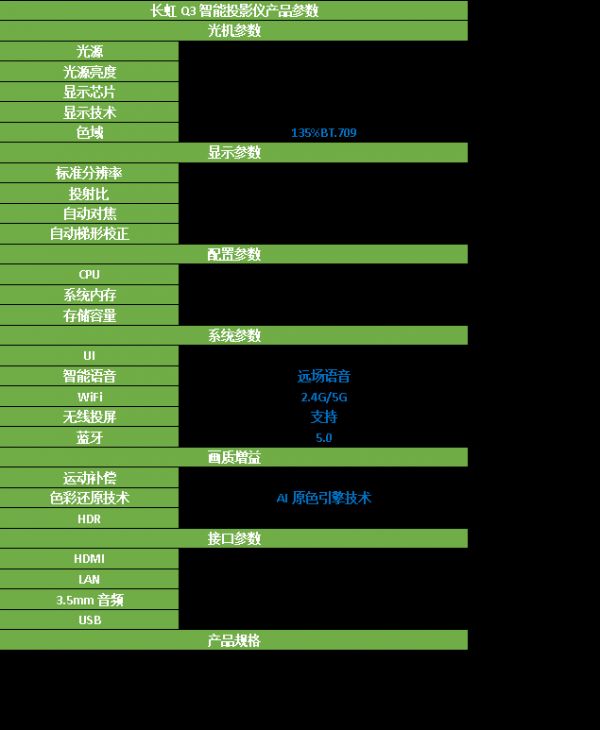 系统方面,长虹Q3智能投影仪支持2.4G/5H双频段WiFi,减少联网播放视频时的卡顿;搭载蓝牙5.0,传输覆盖距离扩大至300米,支持最高24Mbps无损级传输。在你需要时,它可以息屏不投影,通过语音点播歌曲或通过蓝牙连接手机播放音乐,变身智能蓝牙音箱,用音乐默默地陪伴你。