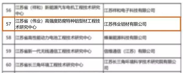新浪门窗频道讯 近日,江苏省科学技术厅对2021年度拟新建省级工程技术研究中心项目认定名单进行公示,江苏伟业铝材有限公司创建的江苏省(伟业)高强度防腐特种铝型材工程技术研究中心成功通过省科技厅审核,获批入选,成为铝型材技术研发与成果转化的重要平台。
