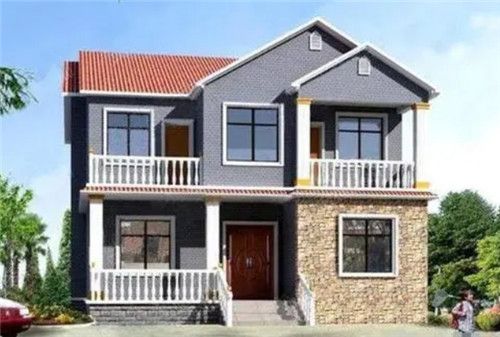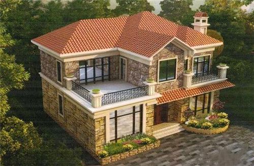 这款房屋的外墙非常有特色、全部采用文化石来进行装饰、装饰好后的外墙就像一朵盛开的蔷薇花、妖娆多姿、引人入目。此外外形不规整、凹凸不平的设计、则能掩盖别墅太过方正呆板的缺陷、为建筑添加了几分灵动性。