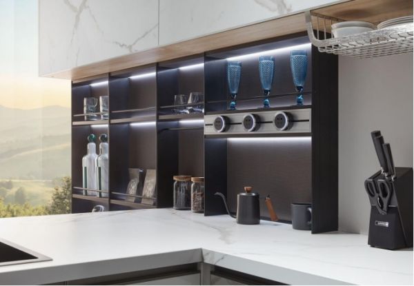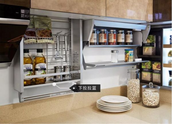 收纳问题一直是国人关注的重点,也是厨房空间设计的难题之一。欧派橱柜根据用户实际情况,可以为用户定制设计不同尺寸的拉篮,做抽屉模块化分格等组合,有效解决收纳难题,瞬间提升抽屉收纳利用率,实现大容量囤货需求。不仅如此,为了使用更加舒心便捷,欧派橱柜在吊柜上采用了电动升降拉篮设计,高效利用柜体高处空间,顶部的物品也能轻而易举拿到,极大地提高空间利用率。