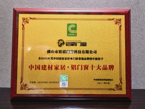 (铝霸门窗获得“中国建材家居●铝门窗十大品牌”)