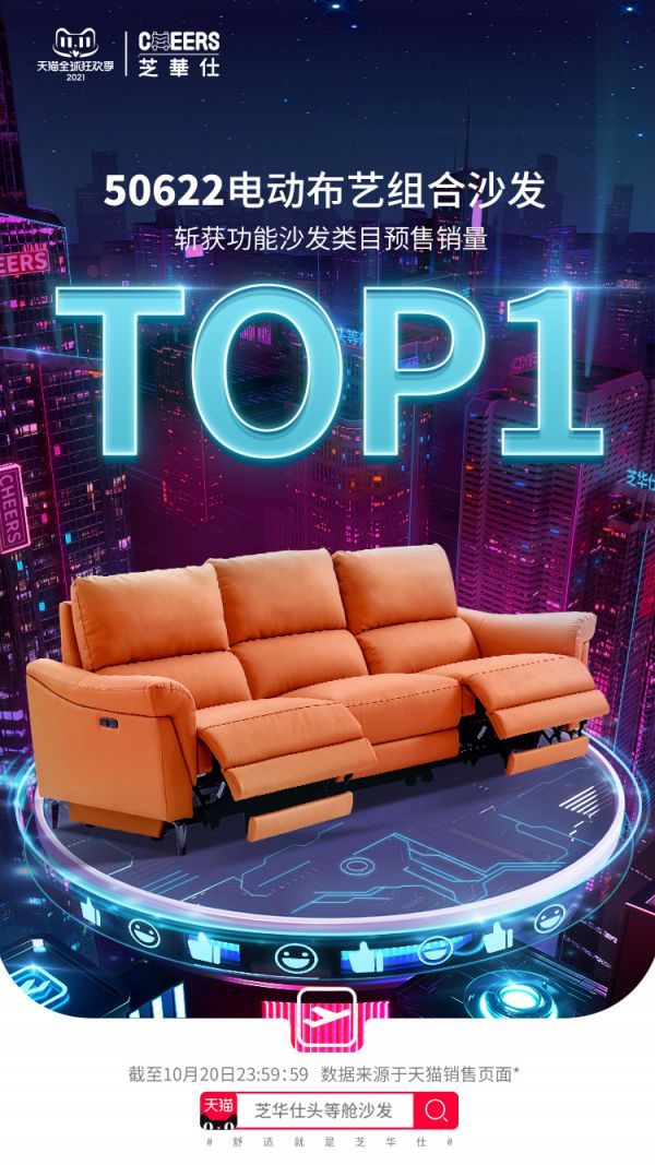 10月20日晚8点,一年一度的双十一预售的战火正式打响,各行各业的品牌也卯足了劲点燃消费者们的热情。本次双十一预售,家居行业的领军品牌——芝华仕有着极大的诚意,带着优惠的价格、优质的产品参与,不负众望地以傲然战绩雄踞天猫家具行业多类目的榜首,又双叒赢得了满堂喝彩!