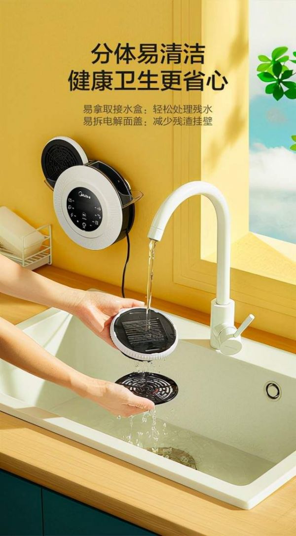 美的MQ2双驱食材净化机采用分体设计,接水盒方便拿取,轻松处理残留水渍。电解面盖也是可拆卸设计,用完拿水冲一冲就能减少残渣挂壁,时刻保持洁净状态。居家生活的物品除了实用性外,很多人都会考虑美观性。美的MQ2双驱食材净化机在拥有专业清洁功能的同时,还拥有萌趣可爱的时尚外观,黑白配色能巧妙融入各种家装环境。这款净化机是台上壁挂一体式设计,可轻松装配,小巧机身能轻松固定在厨房各个角落,给厨房腾出更多空间,使用起来无压力。