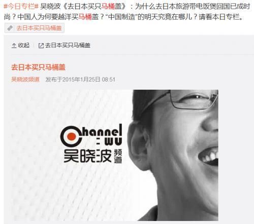 2015年轰动一时的抢购日本马桶盖事件,让吴晓波写下了一篇火遍全网的热文——《去日本买只马桶盖》。他在文中以犀利的笔调,直击以国产卫浴为代表的中国制造“大而不强”、“小而不专”的行业痛点。一句“‘中国制造’的明天在于让中产不必越洋去买马桶盖”,更是引发了无数国人的共鸣。