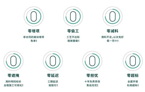而且房子装修完毕之后,东易日盛三好整装采用环保材料保证客户房屋空间环保健康,并保证客户10年免费质保及7零承诺(零增项、零偷工、零减料、零遮掩、零延迟、零担忧、零超标),让客户在入住新家后放心无忧。