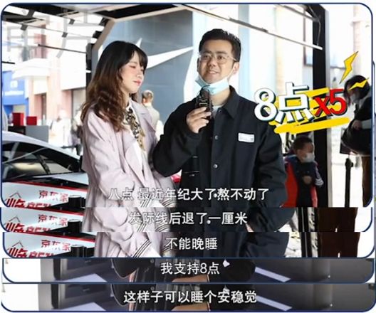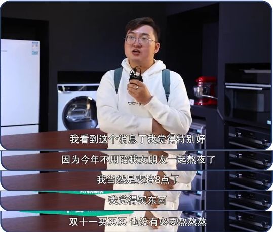 虽然年轻人精力更充沛,但接受采访的年轻人却表示年纪大了熬不动了。尤其是“发际线后退”更成为了消费者们拒绝熬夜的首要原因。在街采过程中,一名新晋宝妈也对11.11晚8点表现出了强烈的支持态度,表示这样子可以睡个安稳觉。