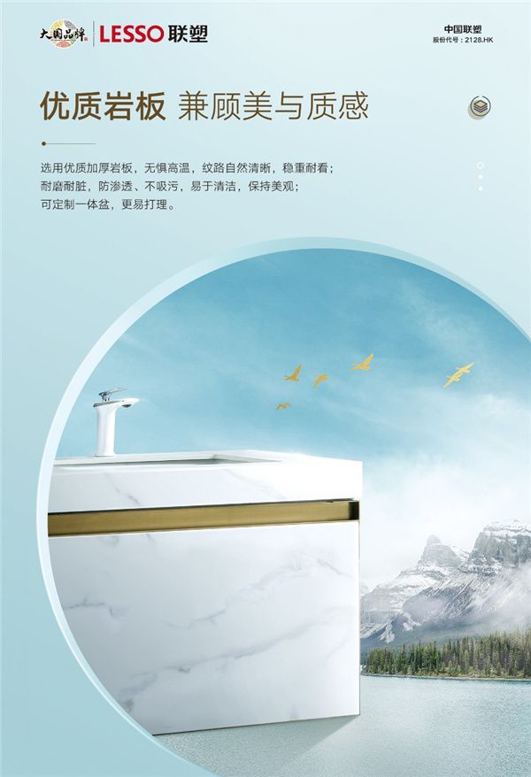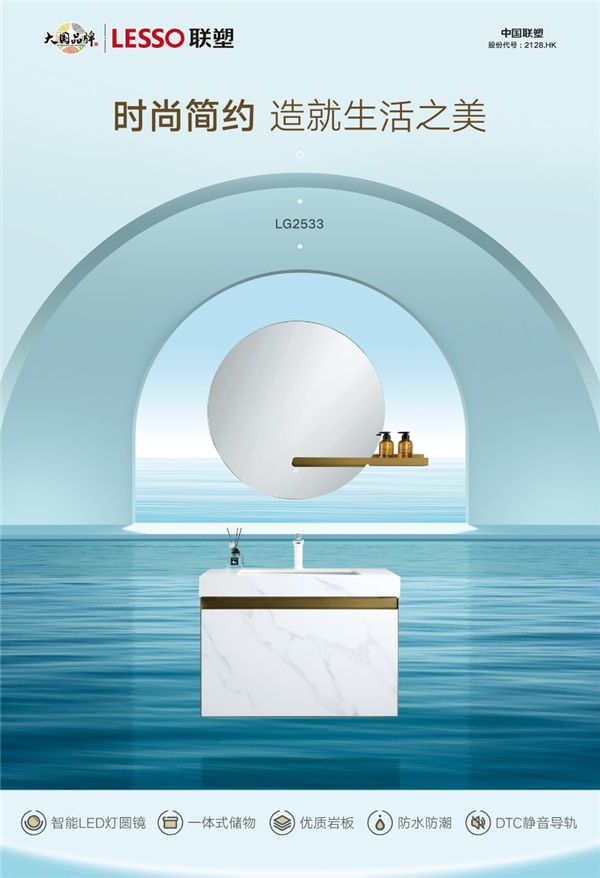 基于消费者的使用习惯以及风格化需求,联塑卫浴推出了新品联塑浴室柜LG2533,从产品外观、收纳性能等细节入手解决了空间搭配和收纳储物的用户刚需,并融入网红材料“岩板”进行外观设计,为用户带来更个性化、更简易便捷的新体验。