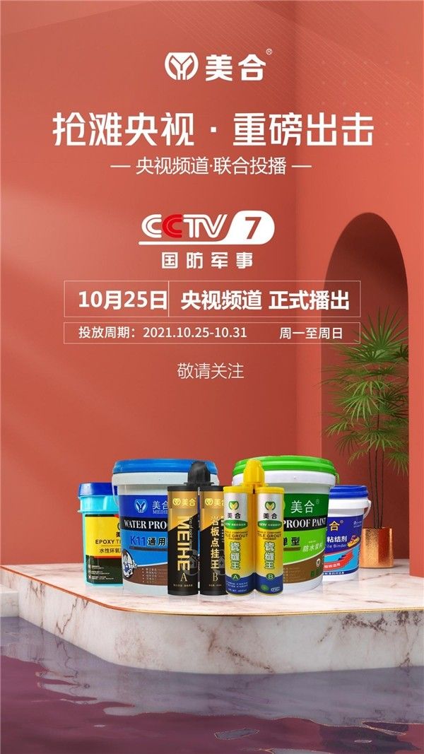 深耕建筑防水涂料行业多年,美合建材辛勤耕耘,播撒品牌营销的种子,灌溉央视展播的鲜花,终不负众望,其广告大片于2021年10月25日震撼上线央视国际军事频道!