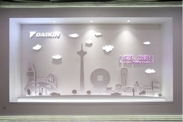 此次沈阳展厅的建设与城市文化属性相融合,著名的东北大学等地标建筑也均采用大金先进的产品和服务,城市剪影与大金品牌渗透进展厅的设计当中,为消费者开启一场舒畅的空气体验之旅。随处可见的大数据屏幕及智能传感等高科技设备、极具趣味性的“24小时生活空间的空气解决方案”墙,灵动的3D气流展示区、科技感十足的透明互动屏及现代舒适的实景样板间等等,大金将看不见的空气可视化,打造全新的沉浸式互动体验中心。