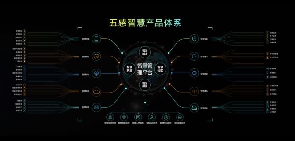 “五感智慧方案系统”是从用户的安全感、健康感、便利感、舒适感、专属感出发,为用户创新人性化场景,包括了“场景体系”和“产品体系”。
