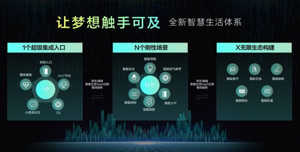 “1”,指的是1个超级入口,集成所有场景控制。“N”,是说通过一体化AIoT平台,链接生态产品,形成N个智能生活场景。“X”,则是基于1和N,形成全屋空间互联互通的生态,构建X生态,可无限扩展智能产品。