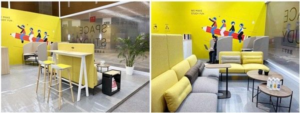 Puffy模块沙发组成的隔断式的社交空间,保证了学生讨论私密性;单人专注沙发满足师生专注学习、安静私密的空间需求