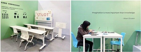 在“未来教室·激发学习”的主题展位中,震旦家具选用了敏捷灵动、可变有趣的家具协助师生实现灵感创意,提升协作效率。如灵动的Puffy模块沙发、Moca休闲椅、R8.5和Handy易组合移动的培训家具,还包括配置多媒体演示和桌面电源的CoLink协作桌、拥有电子锁的Istore钢柜和轻便移动的Swift收纳柜。在“未来教室”的场景中,既支持单人专注学习、多人讨论、课堂讲解,也支持电子设备投屏共享或个人收纳的使用。